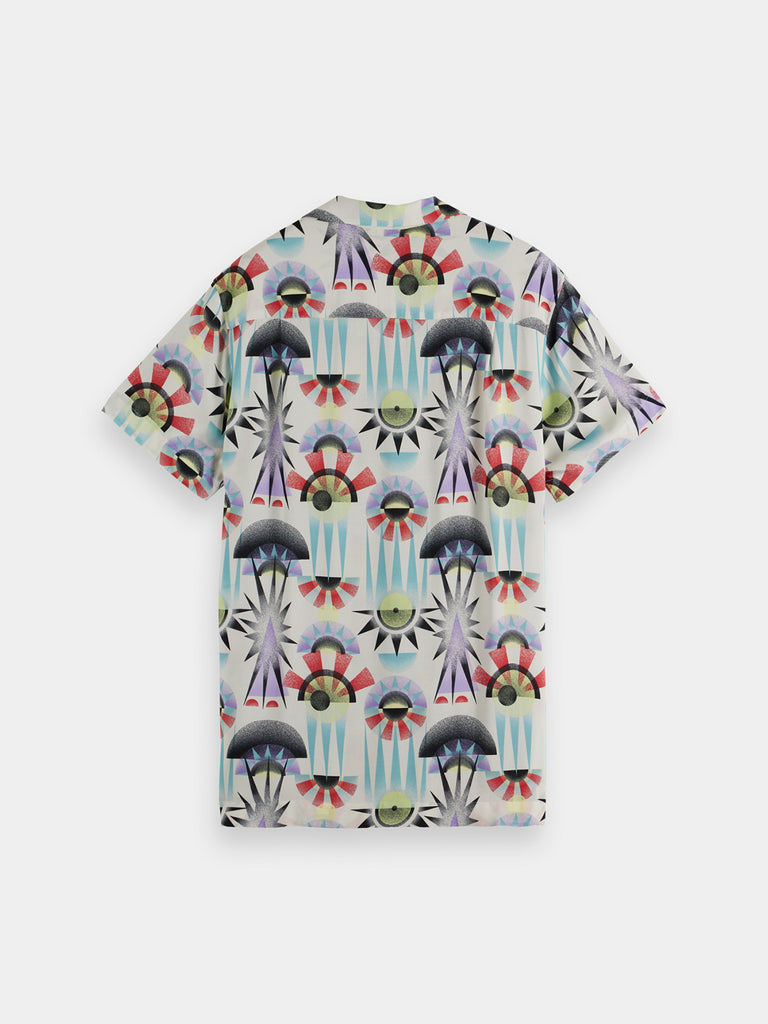 180486-101 S/S Shirts Printed short sleeved shirt Crafted from viscose, this short sleeved shirt features a bold print for a statement-making look. Its fluid, lightweight feel makes it perfect for effortless warm-weather styling. China 100% Viscose